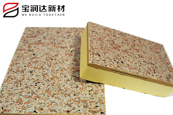 寶潤達保溫一體板由硅酸鈣板和保溫層復合加工而成。具有高檔裝飾效果、耐久保護、高效節能,耐候、抗污染、耐酸雨、附著力強、致密性好,施工方便特點,壽命達幾十年以上。